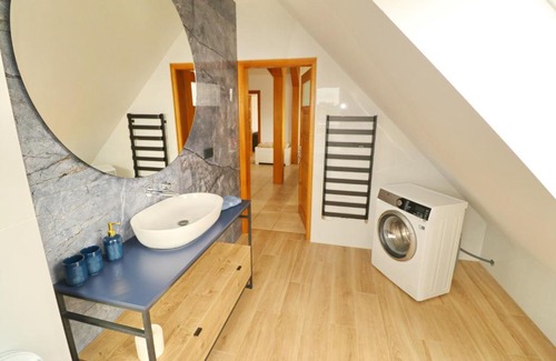 Boasting a spa bath, WRÓBELKI is set in Pisz. This apartment offers free private parking, a shared kitchen and free WiFi. The air-conditioned apartment consists of 3 bedrooms, a living room, a fully equipped kitchen with a fridge and a coffee machine, and 1 bathroom with a hot tub and a hairdryer. Towels and bed linen are offered in the apartment. The apartment offers a hot tub. There is a shared lounge at this property and guests can go cycling nearby.