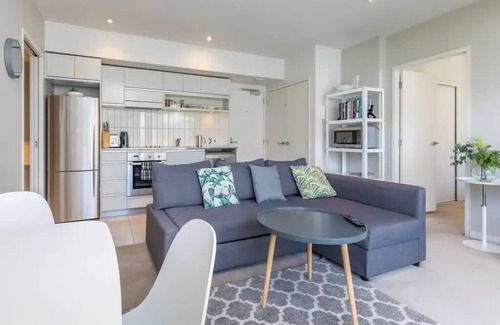 Stay in a stylish 2-bed, 2-bath apartment by Zodiak Stays with lap pool, gym, sauna, and hot tub. The apartment can sleeps up to 6 people with a queen sofa bed and rollaway bed. Enjoy AC, smart TV, and a complimentary car park. Explore Wynyard Quarter/Viaduct's cafes, restaurants, and bars by the waterfront, just steps away!