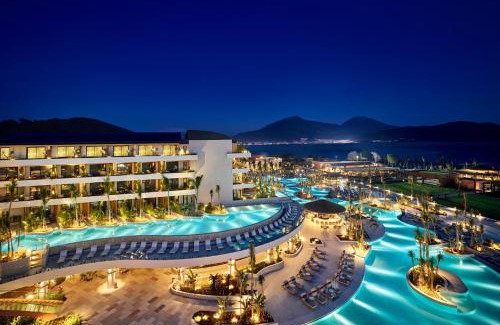 Located in Fethiye, a 14-minute walk from Calis Beach, XO CAPE ARNNA Fethiye provides accommodations with an outdoor swimming pool, free private parking, a fitness center and a garden. Providing a restaurant, the property also features a private beach area, as well as an indoor pool. The property has a 24-hour front desk, airport transportation, a kids' club and free WiFi throughout the property. The hotel will provide guests with air-conditioned rooms with a desk, a coffee machine, a minibar, a safety deposit box, a flat-screen TV, a terrace and a private bathroom with a shower. Each room comes with an electric tea pot, while certain rooms include a balcony and others also offer sea views. Guest rooms include a closet. A buffet breakfast is available at XO CAPE ARNNA Fethiye. The accommodation has a playground. You can play pool, table tennis and darts at this 5-star hotel, and the area is popular for cycling. Ece Saray Marina is 7.5 miles from XO CAPE ARNNA Fethiye, while Fethiye Marina is 7.5 miles away. Dalaman Airport is 27 miles from the property.