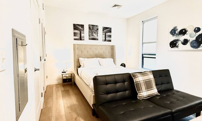 Modern Studio City Stay in the heart of downtown New Haven—just steps from Yale University, award-winning dining, charming cafes, shops, and vibrant nightlife. Ideal for traveling nurses, professors, grad students, or business travelers. This fully furnished unit includes all utilities, high-speed Wi-Fi, and on-site laundry, providing a comfortable, convenient home base in a safe, walkable neighborhood close to everything.