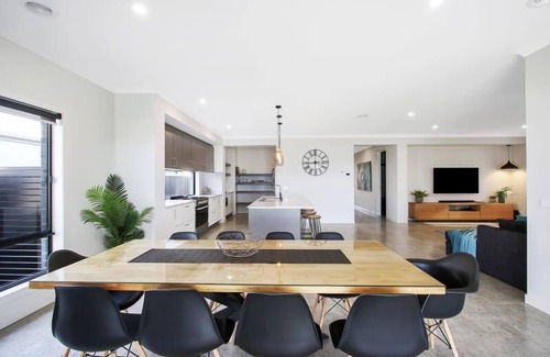 The open plan kitchen, living and al fresco, are perfect for hosting big groups and the abundance of seating lends itself to long lunches and big dinner parties!