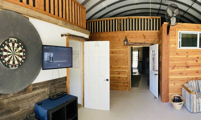 Enjoy a relaxing stay in our Quanset Hut Home that we proudly converted into an artistic and comfortable living space in 2020! Nestled inside this 1,840 sq/ft metal domed "cave", is a modern studio apartment; designed with locally harvested douglas fir from our property and full of comforts and charm.