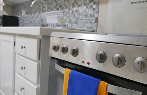The kitchen is equipped with an oven, a stovetop, and a refrigerator, as well as an electric kettle, a microwave, and cookware. Connect to the free WiFi, or get cozy in front of the TV. Other amenities at this 2-bedroom, 1-bathroom rental include bed sheets, an ironing board, and air conditioning.