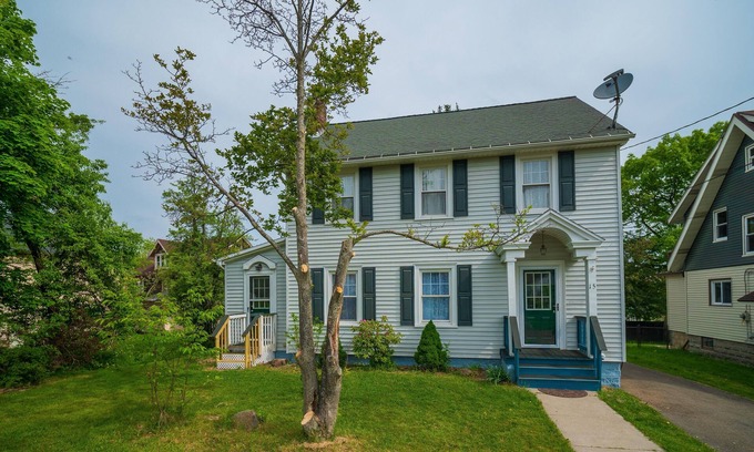 Enjoy a stylish experience at this centrally located home. Fully furnished, newly updated modern home has all the essentials you need for a long-term or short-term stay. Close to UPMC, one minute to downtown Jamestown, minutes to the lake. This 4-bed 1-bath home offers a first-floor bedroom. Upstairs has 3 more bedrooms, two with queen beds, another with 2 twins, and a full bath with a shower/tub spa for the most relaxing experience. Formal living room with stylish couches, a smart tv and a vintage fireplace (not active). A formal dining room with seating for 6 and 2 additional chairs. The kitchen is a dream for cooking and enjoying family meals. All spices and oils, pots, pans, and utensils provided. BBQ grill available outside with a large deck and lawn for entertainment. The driveway is about 100 feet, so bring your toys and park safely off the street.