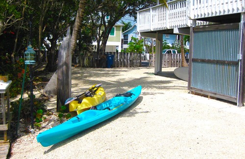 The dock can accommodate a boat up to 30 feet long and includes a fish-cleaning station. Situated on a deepwater canal just six houses from open water, the location is easy to navigate. After a day of fishing, you can unwind with an outdoor shower or take a dip in the crystal-clear canal waters. Swimming, snorkeling, and kayaking are also popular activities. Looe Key Reef and Marine Sanctuary are just a short boat ride away.
