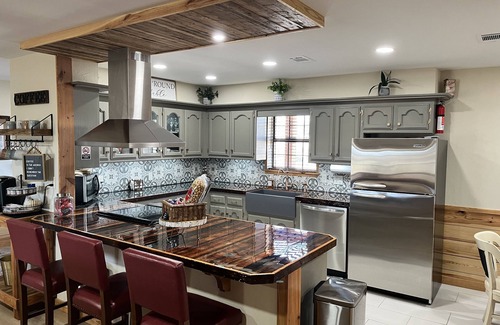 You may want to get into the kitchen and whip up your family’s favorites where you will find a full setup of pots, pans, dishes, silverware, cookstove, oven, microwave, full-sized refrigerator, dishwasher and many other amenities. Or you may want to get into the game room and play some foosball, air hockey, start a hot game of chess, checkers, or poker, or play games and stream your favorite TV services on the big screen! You could also go out to the backyard and get a game of cornhole going with friends or family.