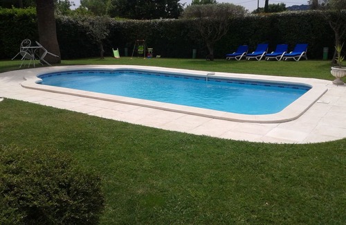 8 * 4 pool on raised ground with alarm for our children, shaded and closed of 1000 m2, with olive trees, exterior lighting and automatic watering.