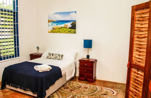 Beautiful hillside villa overlooking the crystal blue waters of the Caribbean Sea and the town of Greenwood. Very spacious throughout, with high ceilings and an open architecture. When the gentle Jamaican breeze is not enough, the air conditioners will be. Large bedrooms with built-in closets and bathrooms. Outside, there is almost an acre of space to explore, with lots of fruit trees and plants. There are also spaces for relaxing and taking in the view. This is truly your home away from home.