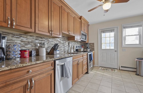 -Off of the Living Room, you will enter the fully stocked Kitchen which houses all the cookware, utensils, and spices needed to make that perfect family dinner. Also an assortment of complimentary coffee and teas. Here you will also have access to the backyard.