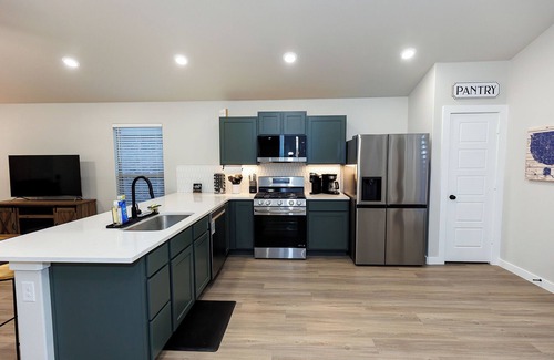 *Your Newest West Lubbock Serenity #2 * Minute's from desired amenities, Your adventure begins at this new 3-bedroom charmer, boasting 1 king suite and 2 queen quarters providing comfort, relaxation and entertainment in every room. Enjoy reclining sofas and a virtual fireplace. Featuring an open kitchen + hotel style luxury bedding and two full baths. Relax and experience that West Texas sky in a private backyard ambiance at the fire pit, BBQing or dominating a game of cornhole! 14 min. to TTU