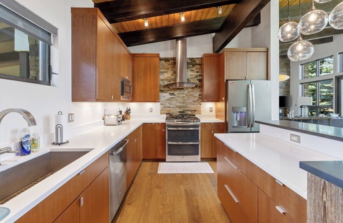 • Gourmet Kitchen: The chef’s kitchen gleams with granite counters, custom cabinetry, and state-of-the-art appliances. Whether you’re preparing a festive holiday meal or a quick breakfast before hitting the slopes, you’ll find everything you need, including large oven and large refrigerator.