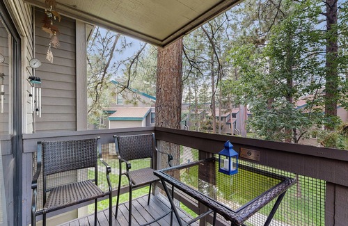 A 2-minute walk to the lake, your two-bedroom with loft townhome boasts vaulted ceilings, a gas fireplace, ceiling fans in all rooms, and all-new LVP flooring throughout. The full kitchen is updated with granite countertops and well-equipped for prepping your favorite recipes, and there's plenty of space to gather for mealtime, board games, and puzzles between the living and dining areas. Unwind after an adventurous day by streaming a show on the living room's smart TV or watching a show from your bed. Step out on the balcony for a view of the green, wooded property grounds and a breath of fresh mountain air anytime.