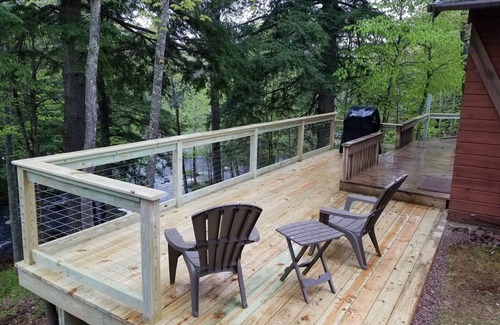 This cozy cabin sits perched above the Peshtigo River and boasts one of the most peaceful and picturesque views to be found for miles along the Peshtigo, as the mighty river is diverted by a multitude of small islands and pours gently over ancient granite formations. You can appreciate the river's splendor from the new deck, and then let it sing you to sleep after sundown.