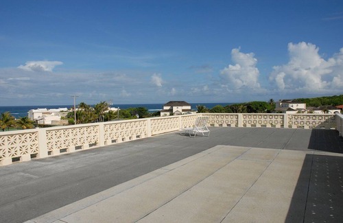 Come and stay at the top floor at Mermaid Apartments, overlooking tropical gardens with coconut and palm trees. Enjoy the tastefully furnished and appointed 3 bedroom 2 bath unit which has free Wi-Fi and is a 5 minute walk to the famous Crane Beach. We rent the apartment as a 1, 2 or 3 bedroom to increase our rentals. When rented as a 1 or 2 bedroom, the other bedrooms are unavailable. You will have the entire 1.800 sq. ft. top floor of the concrete building to yourself.