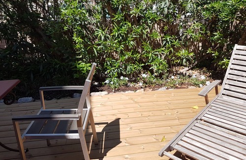 - Very beautiful T2 on the ground floor with trees, swimming pool, sea view, shops and beach