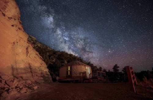 Yurt 6 is located high on the hillside of East Zion Resort. East Zion Resort is located on the hillside in the quiet town of Orderville, Utah near the east entrance of Zion National Park. East Zion Resort is just around the corner from the Red Hollow Slot Canyon Trailhead which has become one of the more popular hikes in the area. We have a grocery store, multiple restaurants, coffee shop and gas stations within minutes of the resort. We are conveniently located between Zion (19 miles) and Bryce Canyon (48 miles) National Parks. If you like hiking, exploring and adventure, East Zion is the place to stay! The East side of Zion National Park provides quicker access to the other adventures and national parks in the area: The North Rim of the Grand Canyon (89 miles), Glen Canyon Recreation Area/Lake Powell (87 miles), Kanab (22 miles), Coral Pink Sand Dunes (20 miles), Horseshoe Bend (99 miles), Antelope Canyon (103 miles) Cedar Breaks (43 miles), Brian Head (51 miles), Navajo Lake (36 miles), The Wave (71 miles), The Grand Staircase (10 miles), Belly of the Dragon (5 miles) and many more! East Zion's more rural area provides some of the best dark skies in the world making stargazing a MUST when you visit East Zion Resort! East Zion Resort is your perfect basecamp for your Southern Utah Vacation!