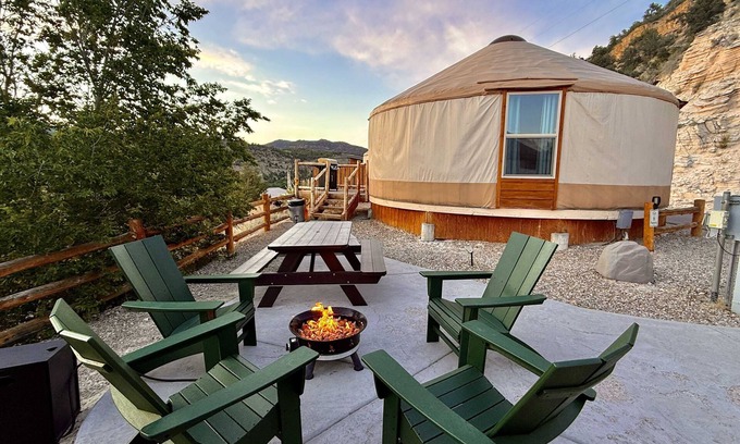 Welcome to "The Cliff Dwelling Yurts" at East Zion Resort! We believe the places you stay while on vacation should be a unique and fascinating experience! Stunning views in all directions, spectacular sunsets every night & dark sky for stargazing. Each yurt has been designed with its own private bathroom, WIFI, heating & a/c, kitchenette, gas fire pit, & gas grill. Two Resort Pools, Lazy River, 4 Hot Tubs & Pickleball Courts will keep you relaxed and entertained at East Zion Resort!