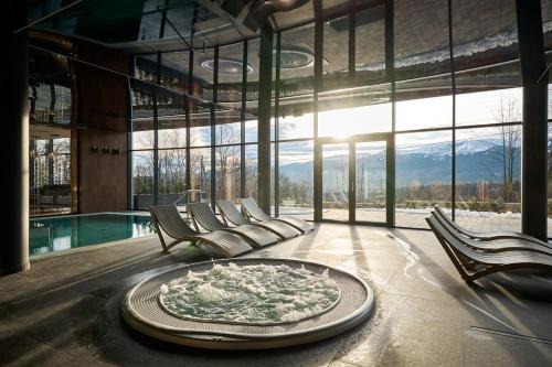 Located in Szklarska Poręba, a 18-minute walk from Death Turn, Złoty Horyzont Resort Szklarska Poręba provides accommodations with a terrace, private parking, a restaurant and a bar. Featuring a fitness center, the 4-star hotel has air-conditioned rooms with free WiFi, each with a private bathroom. The hotel has an indoor pool, sauna and a kids' club. Guest rooms in the hotel are equipped with a flat-screen TV and free toiletries. A buffet, continental or Full English/Irish breakfast is served at the property. At Złoty Horyzont Resort Szklarska Poręba guests are welcome to use a hot tub. Guests at the accommodation will be able to enjoy activities in and around Szklarska Poręba, like skiing and cycling. Dinopark is a 19-minute walk from Złoty Horyzont Resort Szklarska Poręba, while Izerska Railway is 1.1 miles away. Copernicus Wrocław Airport is 75 miles from the property.