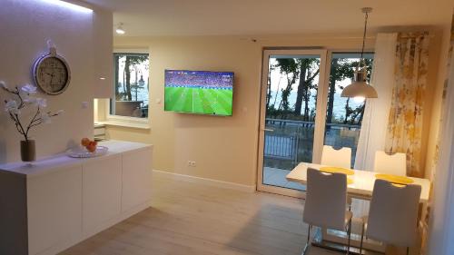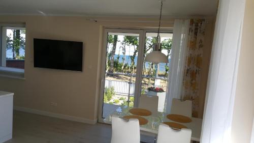 A few steps from Rewal Beach in Rewal, Z widokiem na morze offers accommodations with access to an indoor pool. This beachfront property offers access to a balcony, free private parking, and free Wifi. Guests can use the spa and wellness center with a sauna, hot tub, and hammam, as well as an infinity pool. Featuring a terrace and sea views, the apartment includes 1 bedroom, a living room, satellite flat-screen TV, an equipped kitchen, and 1 bathroom with a shower. Towels and bed linen are available in the apartment. This apartment is allergy-free and non-smoking. A mini-market is available at the apartment. For guests with children, the apartment features outdoor play equipment. If you like to discover the area, windsurfing, fishing and hiking are possible in the surroundings and Z widokiem na morze can arrange a bicycle rental service. Town Hall is 30 miles from the accommodation, while Kołobrzeg Railway Station is 30 miles from the property.
