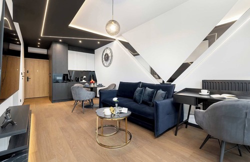 Discover the magic of the city from our exclusive apartment. Located on the 24th floor of a modern building, the air-conditioned studio is a combination of elegance and functionality that offers everything you need to work remotely - a high-speed wireless network and a comfortable desk. After work, take a stroll around the city or visit one of the many eateries in the area. The carefully decorated space allows you to relax in an atmosphere of prestige and luxury - a bathtub equipped with a hydromassage function, panoramic windows, a view of the urban landscape, a cozy bedroom area, subtle lighting and high-quality materials make you feel special. This apartment is an ideal place for both business travelers and tourists who want to take a break from everyday life. After an eventful day, take a breather while enjoying the sunset and night cityscapes. A fully equipped kitchenette and a comfortable bed will ensure your comfort and convenience.