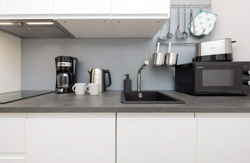 This modern studio apartment is located in the seaside village of Niechorze on Zaciszna Street. It is an ideal location for a quiet holiday surrounded by sea nature. The apartment is located less than 300 meters from the beautiful sandy beach! In the area there are many great restaurants and cafes, where you can eat delicious meals or drink aromatic coffee. The center of Niechorze and the bus station are less than 2 km away. In the nearby town Rewal (3km) there is a famous oceanarium, so it is worth a family trip there.
