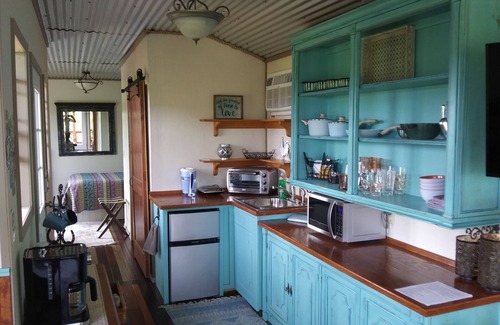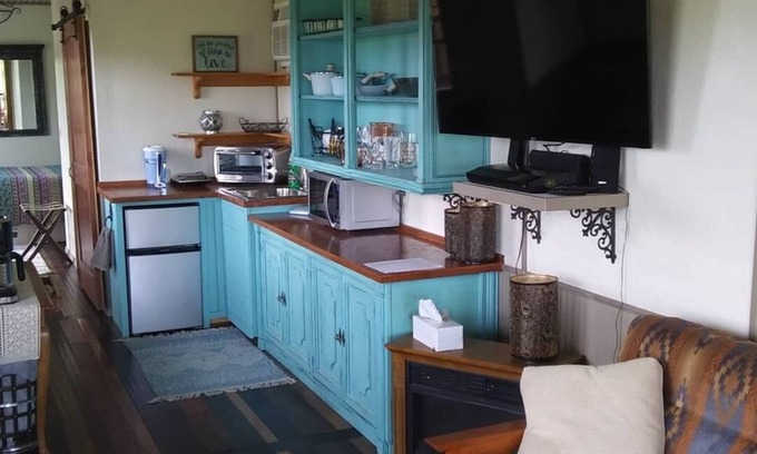 Zannabella's Valley View Lodge W/ full breakfast is a sweet escape into the quiet Hill Country. Fully equipped tiny home features artistic southwest BOHO style with assorted exotic hardwood floors.