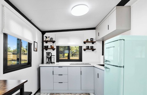 THE SPACE: This cozy 2-bedroom tiny home sits on a scenic 10-acre ranch, home to a variety of friendly animals-including 4 live zebras!
