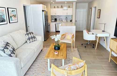 Stylish condo, steps away from two great West Coast beaches; one beautiful and quiet and the other, the buzzing Mullins Beach