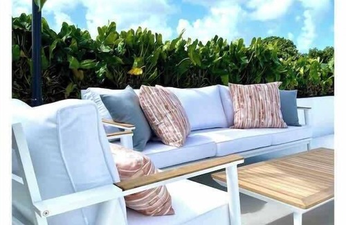 Up on the roof terrace, you'll enjoy panoramic sea views, surrounded by lush tropical plants, sun loungers, and an umbrella. The roof terrace is the perfect spot to relax and take in the stunning scenery that Barbados has to offer. If you're in the mood for some entertainment, there is dining for eight and a wet bar with a drinks fridge.