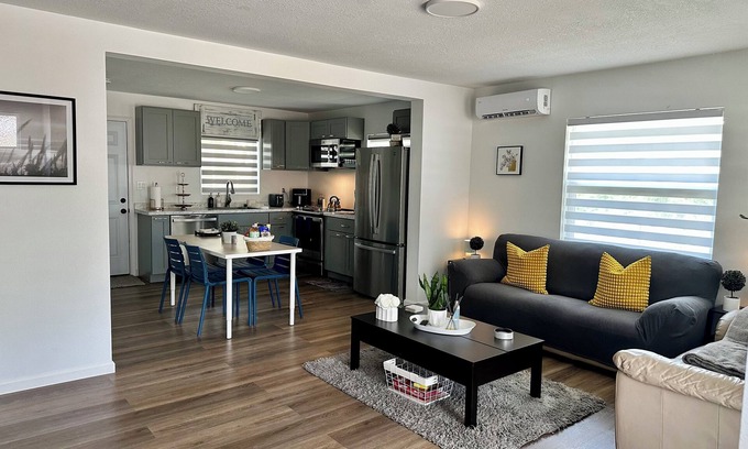 Welcome to our cozy, modern, and fully remodeled 2BR/1BA bungalow in the heart of Zephyrhills! Enjoy a bright mid-century retreat with plenty of space to relax, work, or play. Centrally located near parks, restaurants, bars, and healthcare facilities. Features include a full kitchen, dining room, comfy living room, washer/dryer, fast Wi-Fi, Netflix, Keurig with coffee pods, pots, pans, dishes, and more. Perfect for anyone!