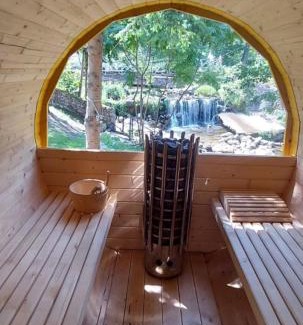 Offering a garden, Zielony Zakątek Karpacz offers accommodations in Karpacz. This property offers access to a balcony, free private parking, and free Wifi. Guests also enjoy access to the sauna and hot tub, as well as the fitness center and open-air bath. Featuring a terrace and mountain views, the villa includes 5 bedrooms, a living room, flat-screen TV, an equipped kitchen, and 2 bathrooms with a hot tub and a bath. Towels and bed linen are offered in the villa. For added privacy, the accommodation features a private entrance. During the colder months, guests can enjoy winter sports in the surrounding area. For guests with children, the villa features a children's playground. The villa also comes with outdoor fireplace and a picnic area for a day outdoors. Wang Church is 3.7 miles from Zielony Zakątek Karpacz, while Western City is 3.7 miles from the property. Copernicus Wrocław Airport is 68 miles away.