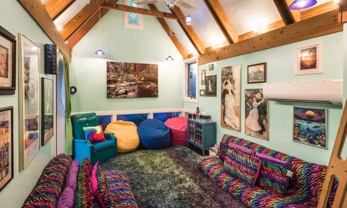 *Two full size futons on the floor, one in the loft, and big fluffy bean bags. Small bathroom with a very tiny shower (won’t be able to bend over in it). Shave you legs before you arrive :)