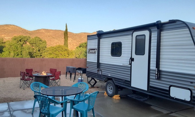 Camp trailer located on residence. You will have own entrance and parking in driveway. There is a outdoor eating area, cooking, and fire pit area for us as well. Great views of the La Verkin overlook and is located just a short 20 minture drive to zion national park. Includes outdoor 2 burner grill, outdoor fire pit, Ice chest, eating area, utensils, pots/pans, silverware, cups, plates, propane tanks, fresh linens and more.